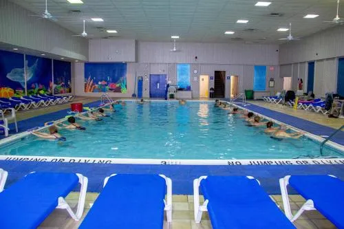 La piscina interna del Villa Roma Resort offre un'esperienza acquatica versatile, completata da una vasca idromassaggio e una sauna per il relax. Il resort offre corsi di acquagym e include una piscina per bambini e uno scivolo d'acqua. Questo lo rende un'opzione adatta sia per il tempo libero che per il divertimento in famiglia.