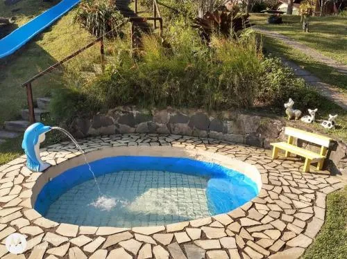 La piscina all'aperto della Pousada Chácara do Rio è immersa in una ricca vegetazione, offrendo un ambiente naturale e tranquillo. La proprietà vanta anche una cascata privata, che aggiunge un elemento naturale unico all'ambiente circostante l'area della piscina.